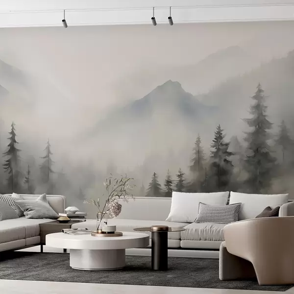 Fototapety Les v mlze na pozadí hor Č. w04493