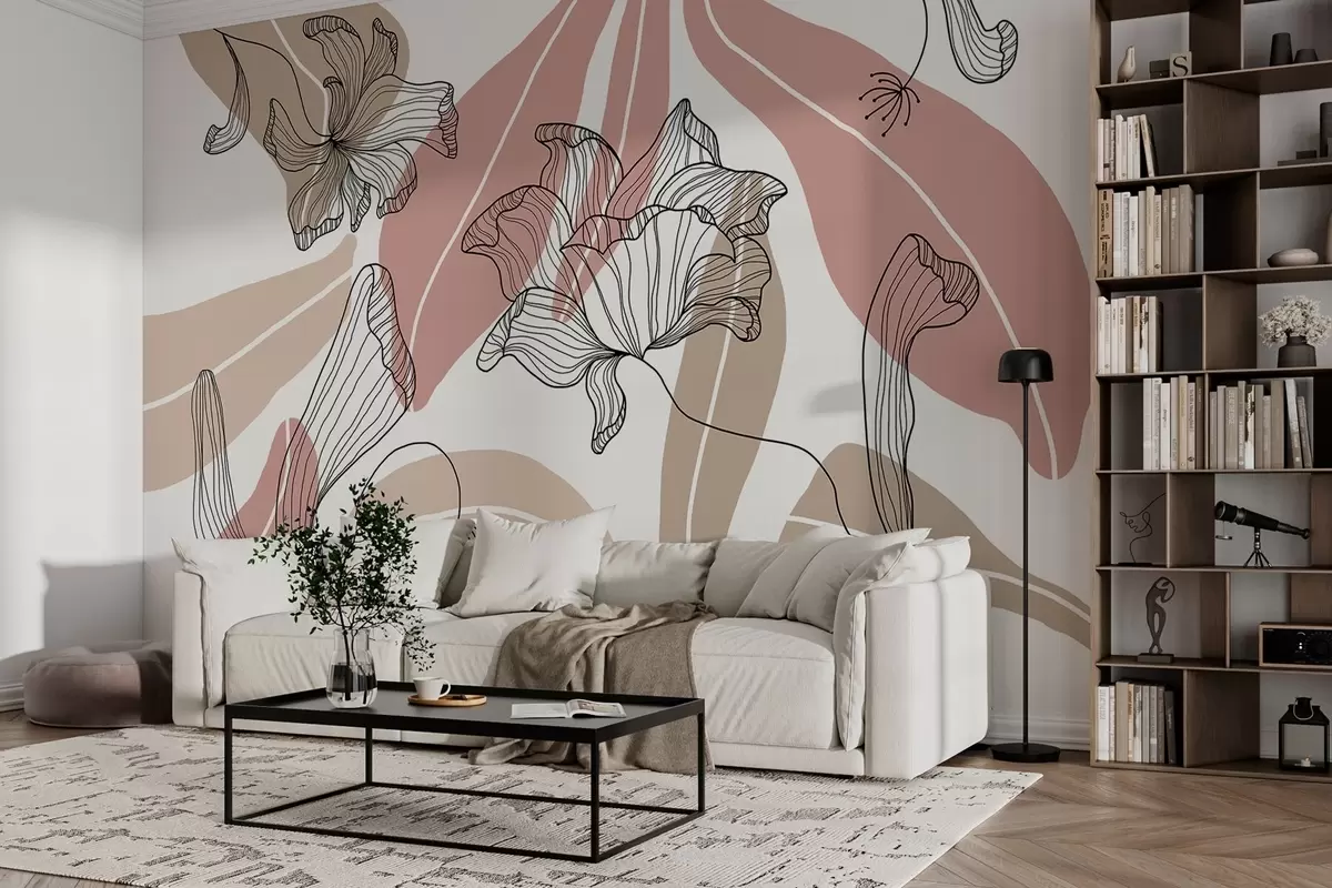 Fototapety abstraktní listy a květiny v pudrových a béžových tónech Č. w04499
