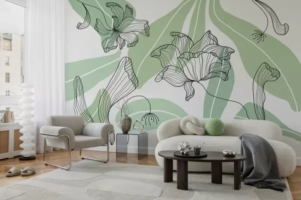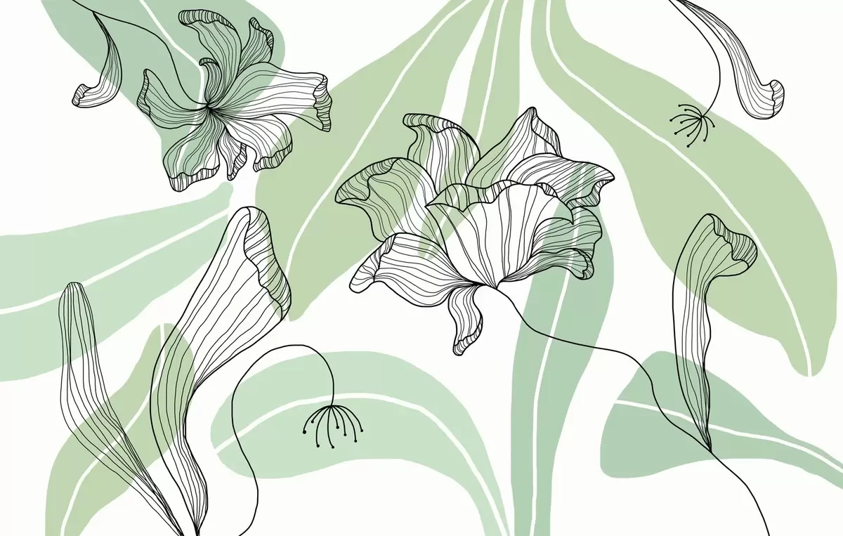 Fototapety abstraktní listy a květiny v zelených tónech Č. w04499v1
