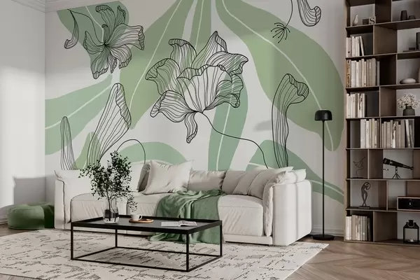 Fototapety abstraktní listy a květiny v zelených tónech Č. w04499v1