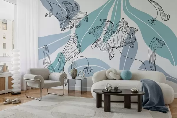 Fototapety abstraktní listy a květiny v modrých tónech Č. w04499v2