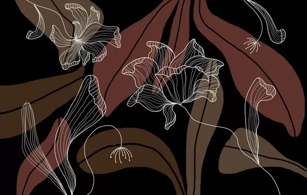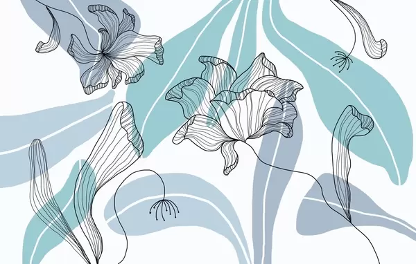 Fototapety abstraktní listy a květiny v modrých tónech Č. w04499v2