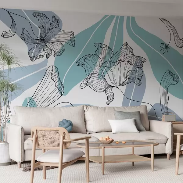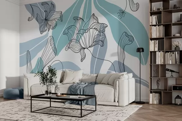 Fototapety abstraktní listy a květiny v modrých tónech Č. w04499v2
