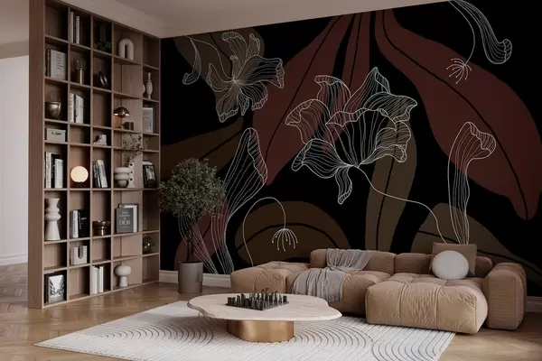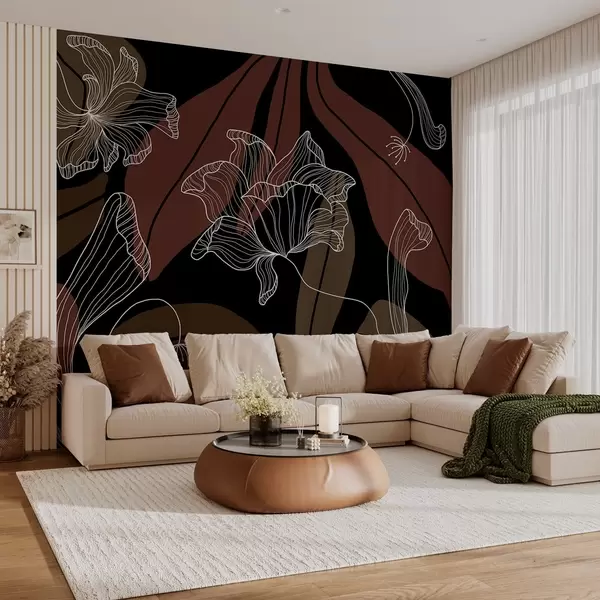 Fototapety abstraktní listy a květy v pudrových a béžových tónech na tmavém pozadí Č. w04499v3