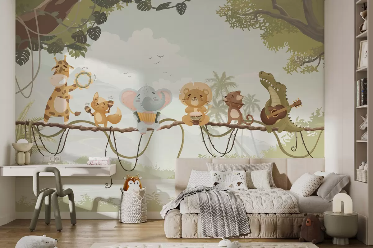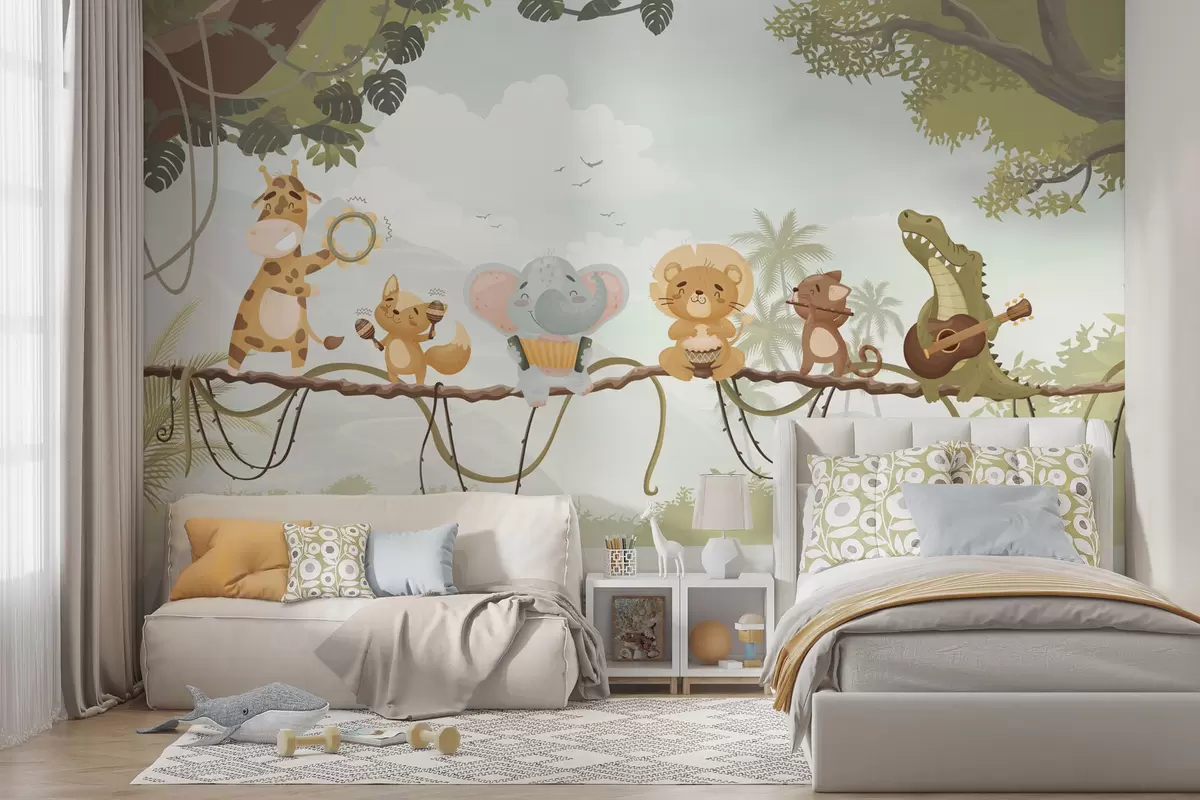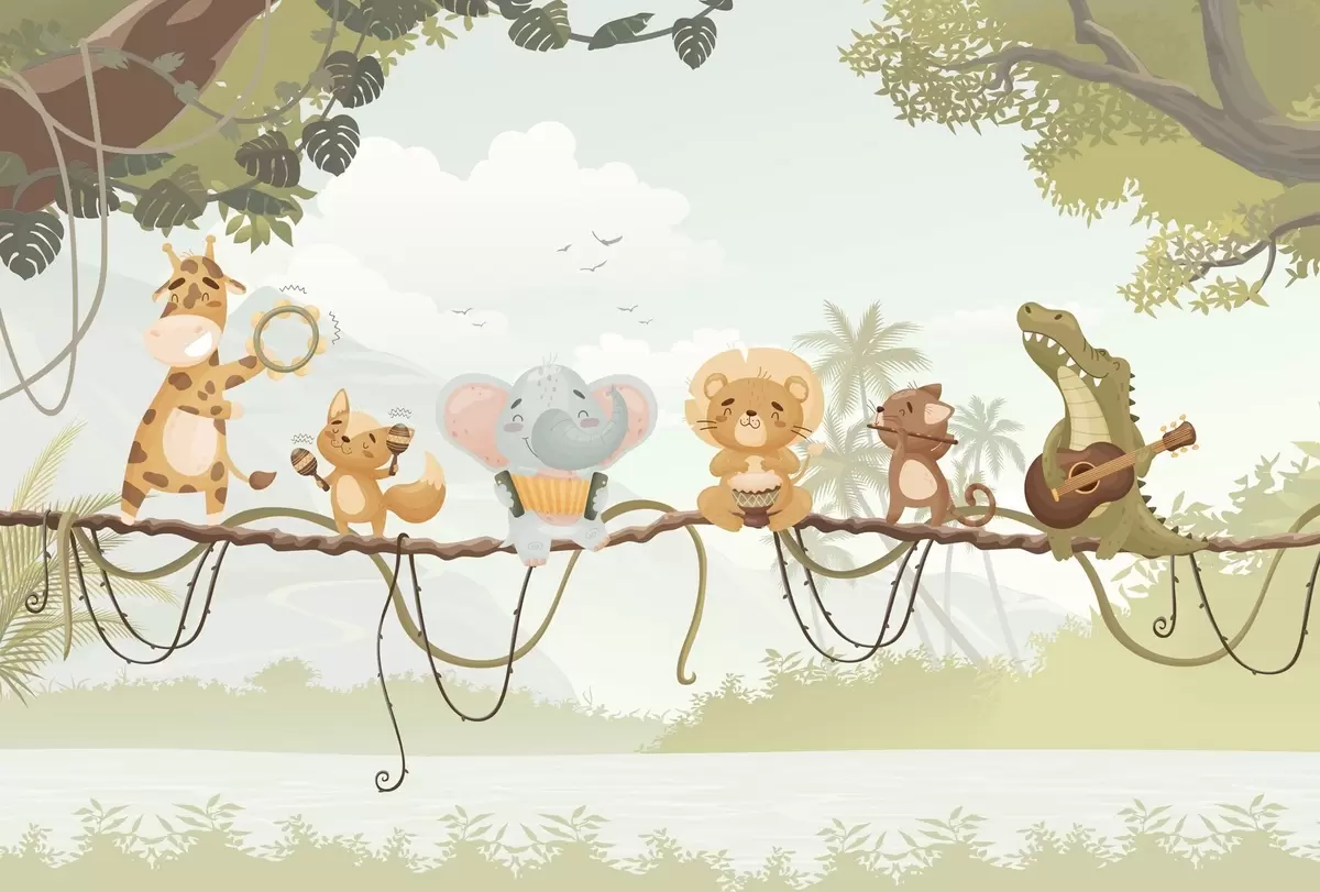 Fototapety Zvířata s hudebními nástroji na pozadí tropické krajiny Č. w04505v1