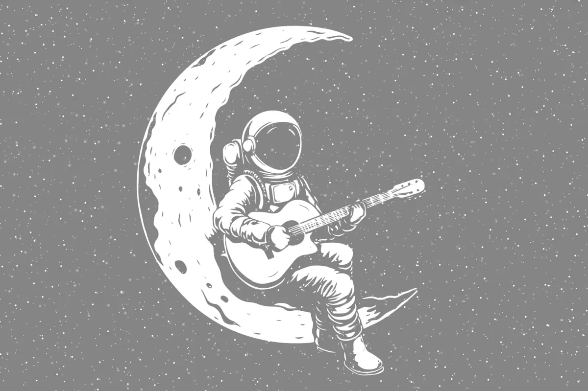 Fototapety Kosmonaut, měsíc, kytara Č. w04514