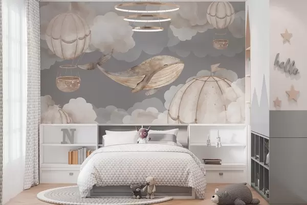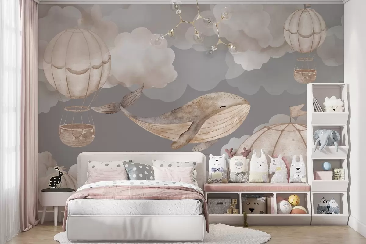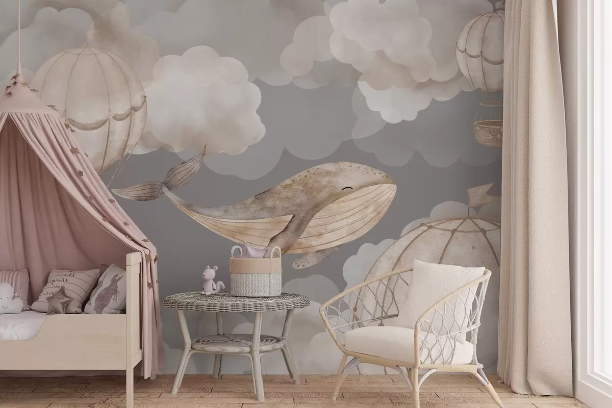 Fototapety Velryba a horkovzdušné balóny mezi měkkými mraky Č. w04522