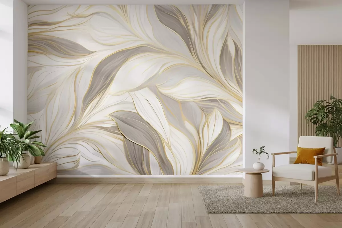 Fototapety Listy s hladkými křivkami v světle béžovo-šedých tónech Č. w04609