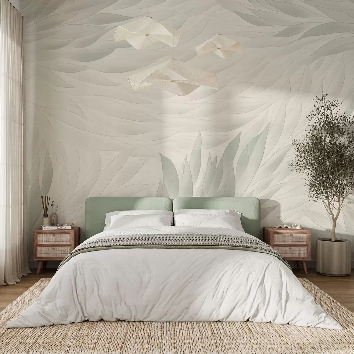 Fototapety Vlnitá listová čepel v jemných zeleno-béžových odstínech Č. w04610v2