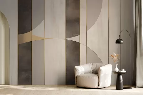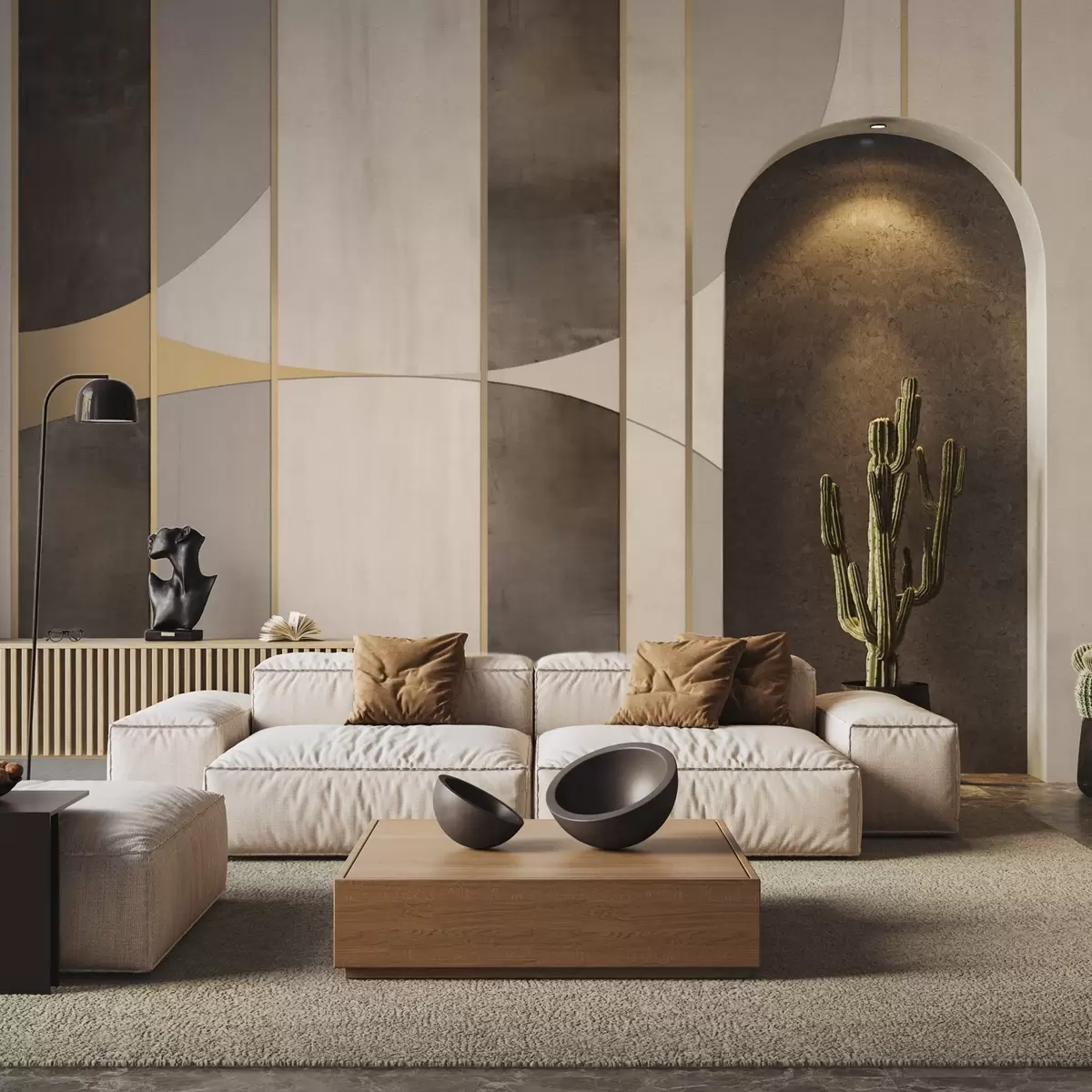 Fototapety Geometrické panely s oblouky a šampaňskými akcenty Č. w04616