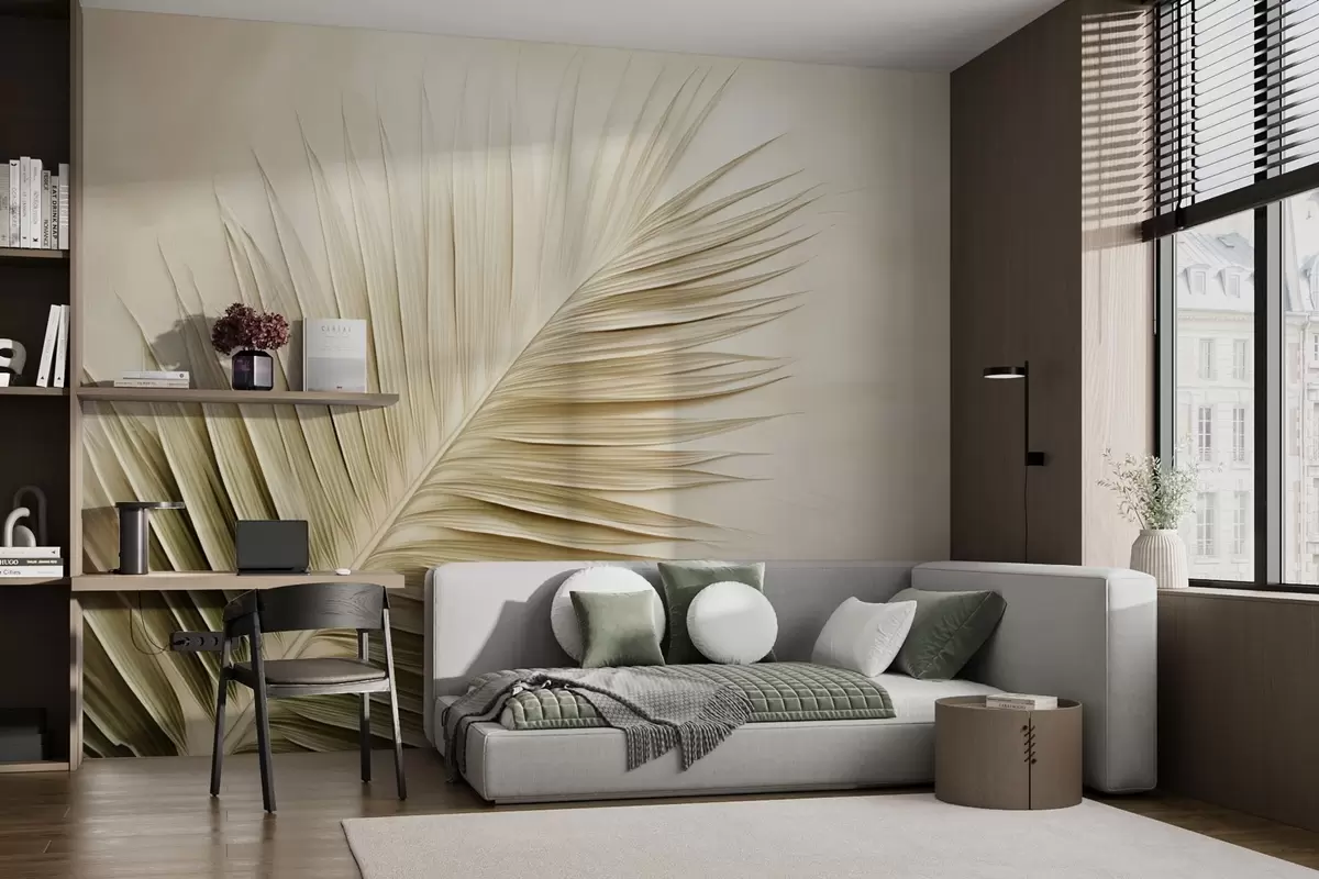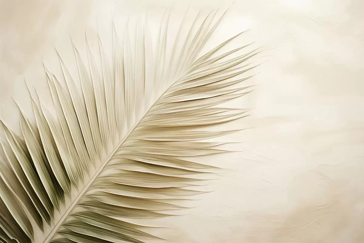 Fototapety Béžový palmový list na měkkém texturovaném pozadí Č. w04618