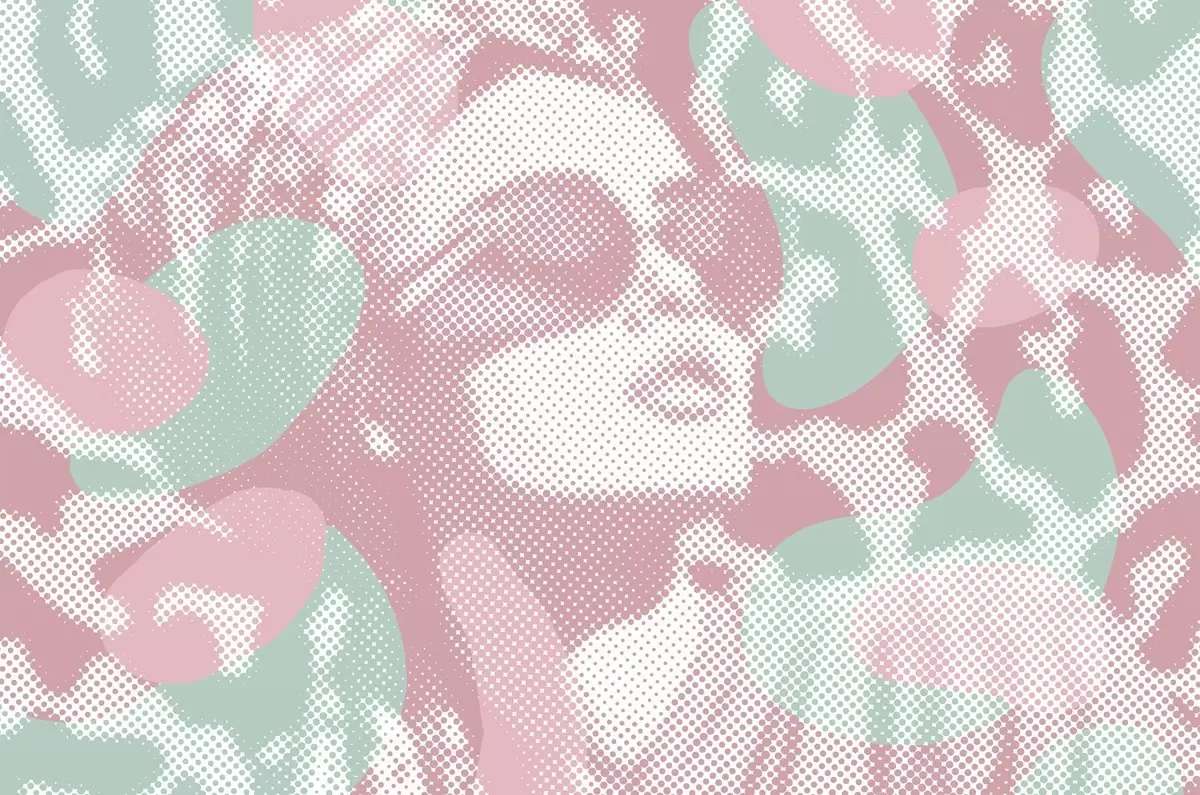 Fototapety portrét ženy na pozadí leoparda v tečkovaném stylu v růžových a zelených tónech Č. w04630v2