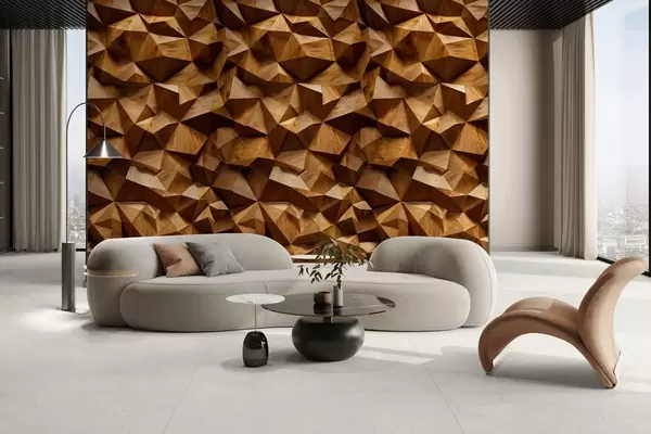 Fototapety imitace hranaté reliéfní stěny ze dřeva Č. w04632