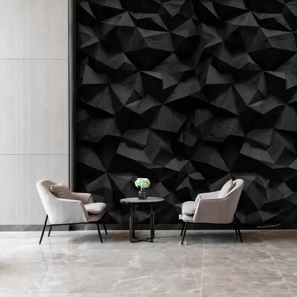 Fototapety imitace hranaté reliéfní stěny z tmavého dřeva Č. w04632v1