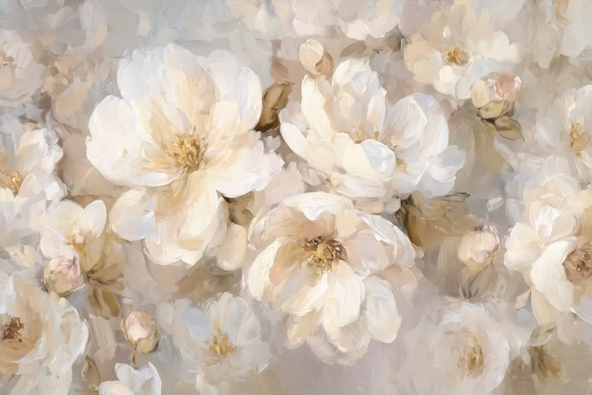 Fototapety velké květy v bílé a béžové barvě ve stylu olejomalby Č. w04633