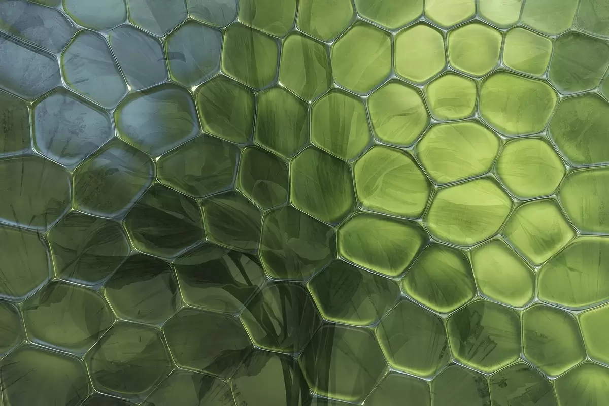 Fototapety Listy skrz skleněné plástve Č. w04667