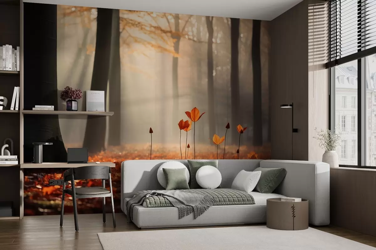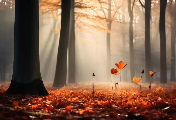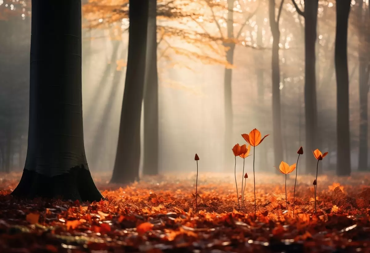 Fototapety Podzimní les se slunečními paprsky a jasným listovím Č. w04710