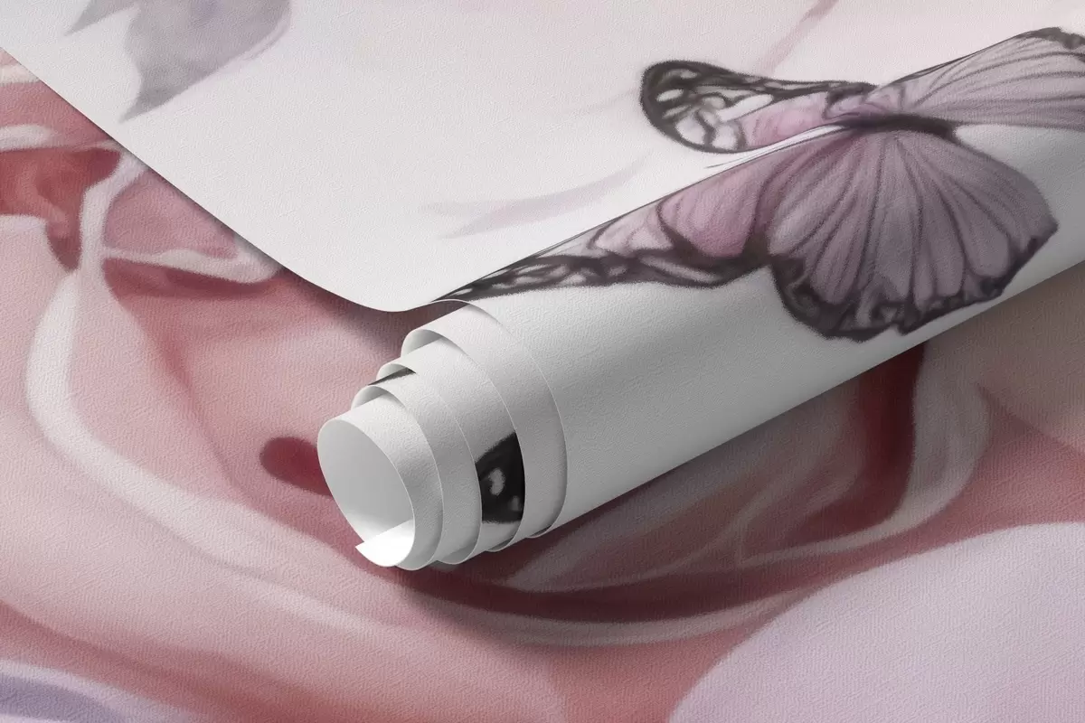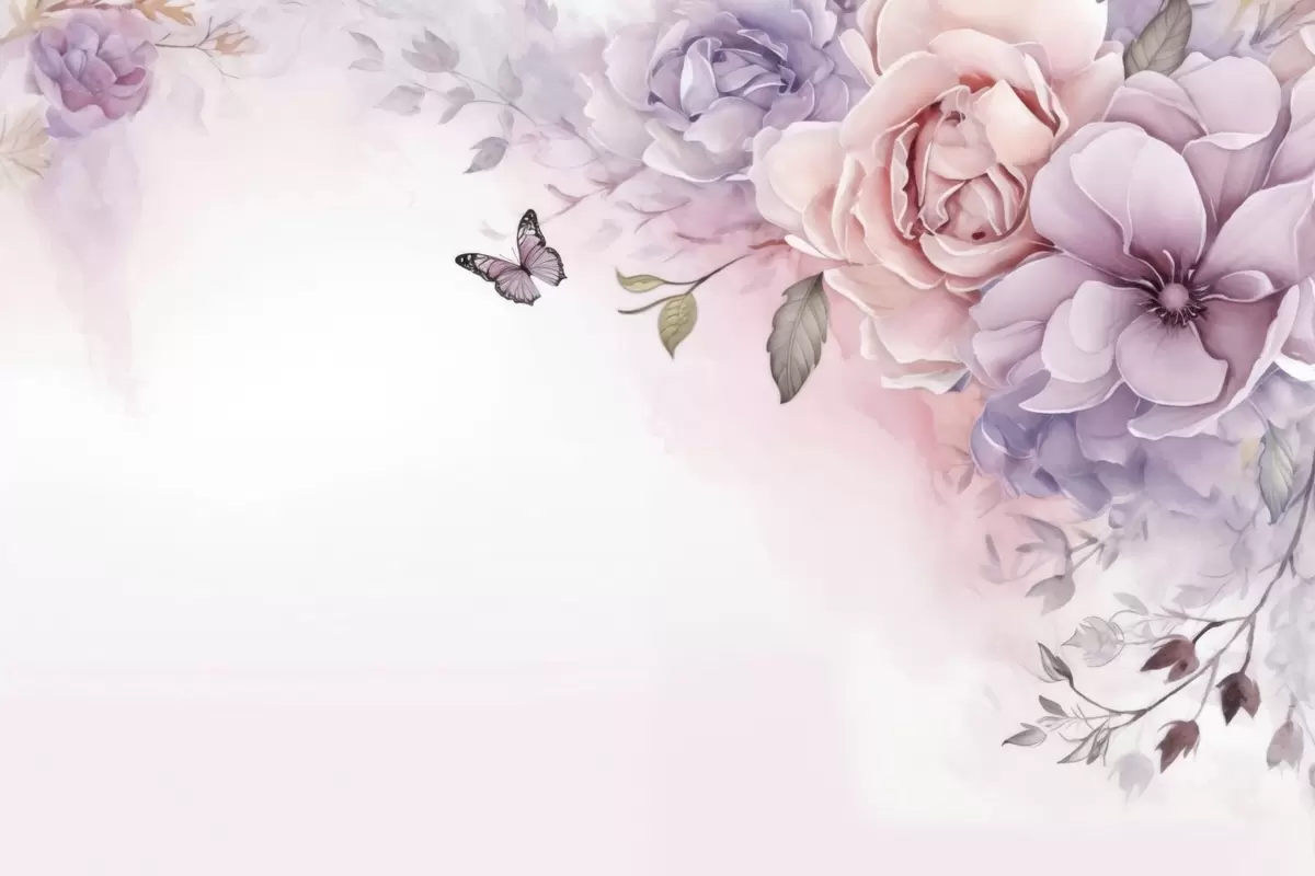 Fototapety Jemné růžové a lila květy s motýlem Č. w04711