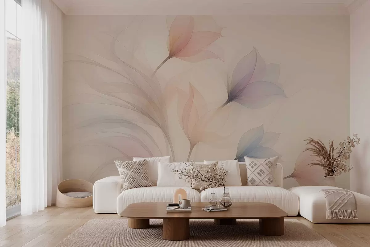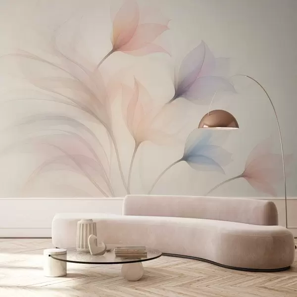 Fototapety jemné poloprůsvitné tulipány na béžovém pozadí Č. w04754
