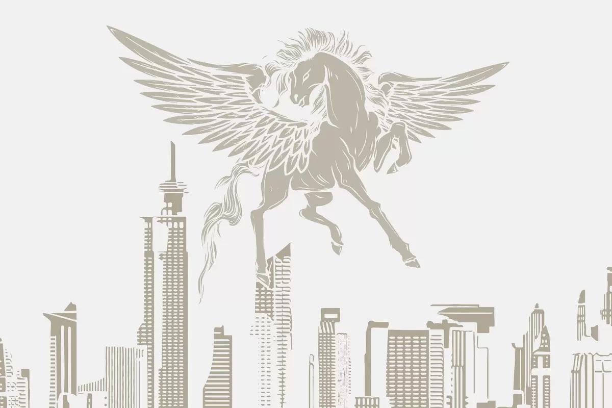Fototapety Pegasus nad městem Č. w04777v1