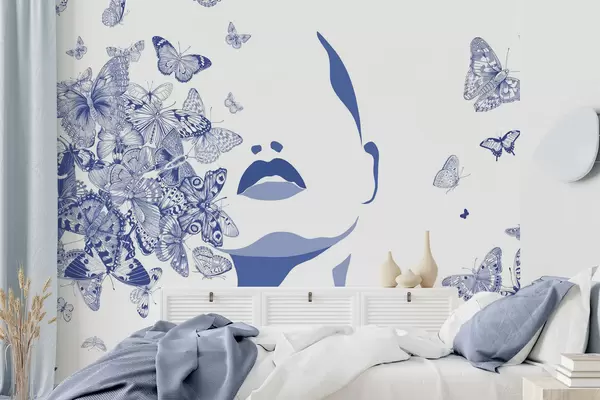 Fototapety Silueta tváře mezi motýly Č. w04778v1