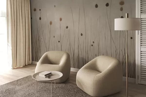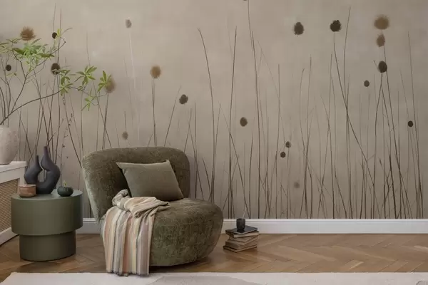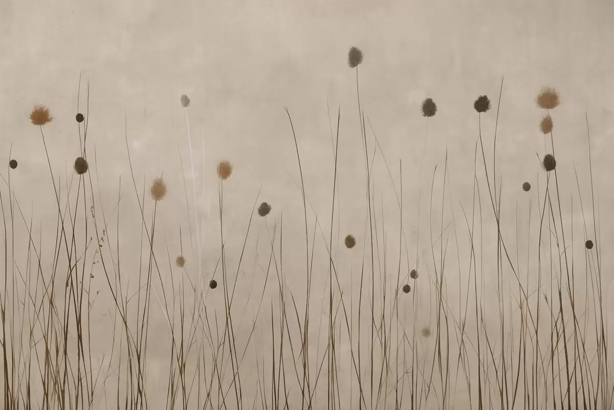 Fototapety Tenké trávy a nadýchané semeníky na teplém béžovém pozadí Č. w04793