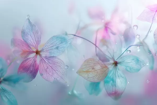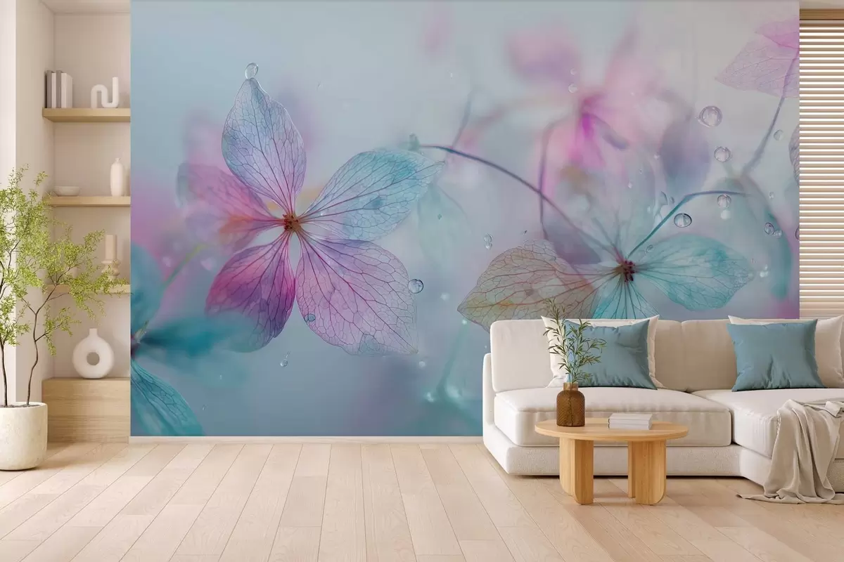 Fototapety jemné květy s žilkami pod vodou Č. w04809