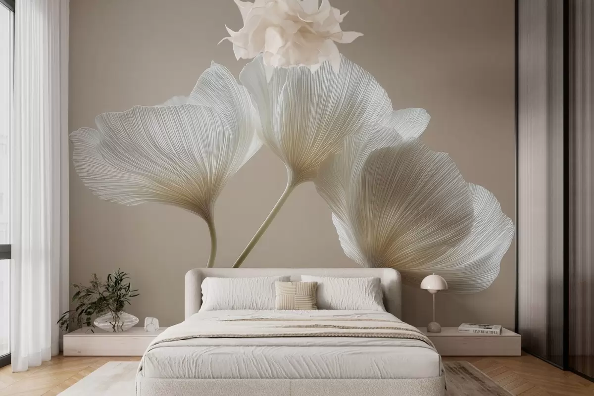 Fototapet tři jemné květiny na béžovém pozadí w04810