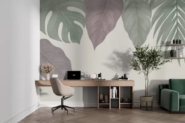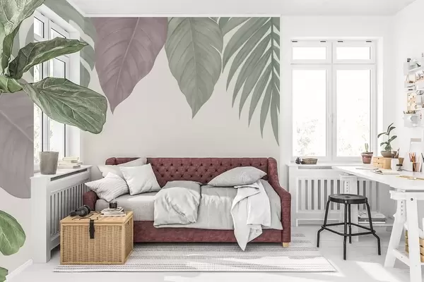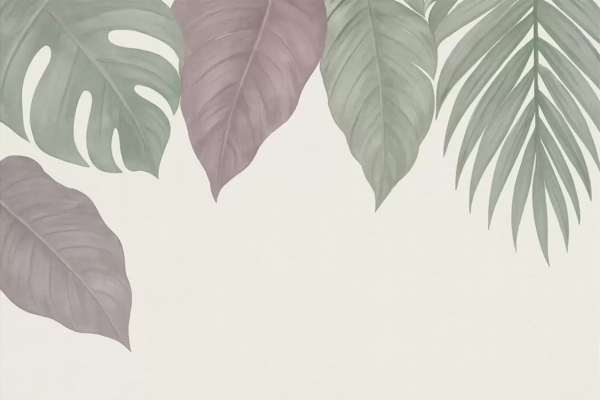Fototapety velké tropické listy v jednoduchém stylu, shora Č. w04819