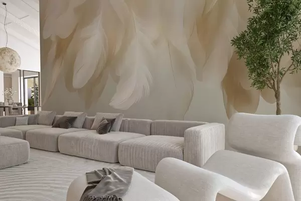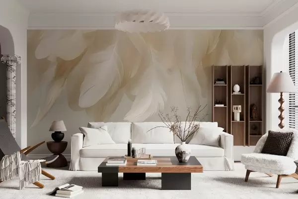 Fototapety Bohaté a jemné závěsné peří v uklidňujících tónech Č. w04842