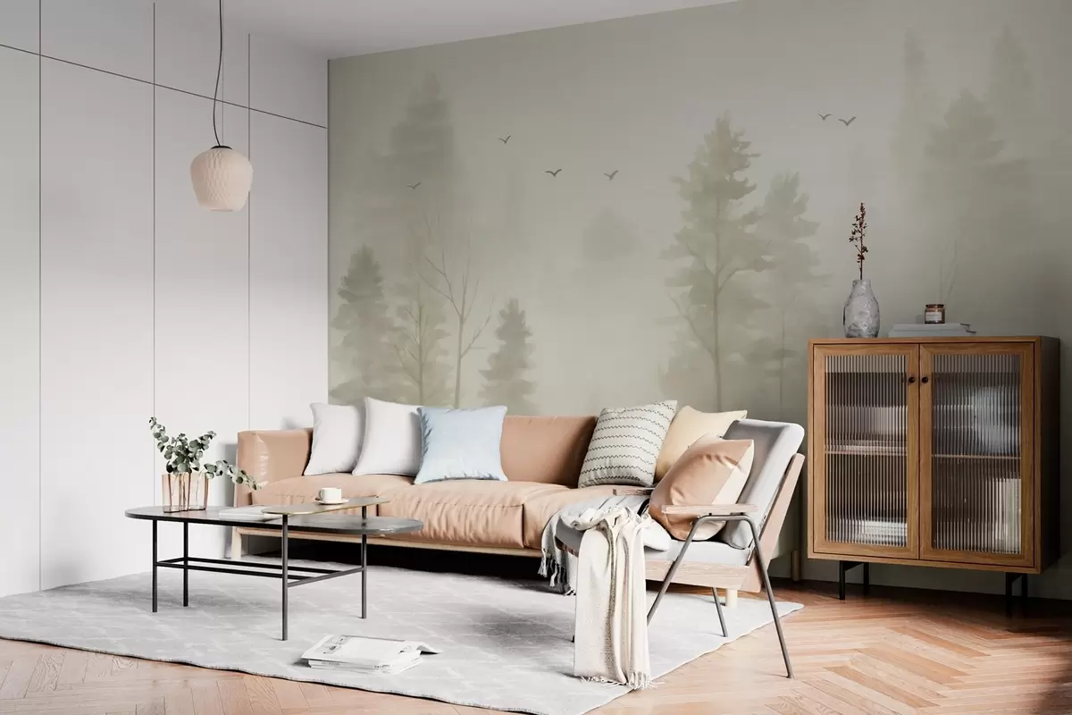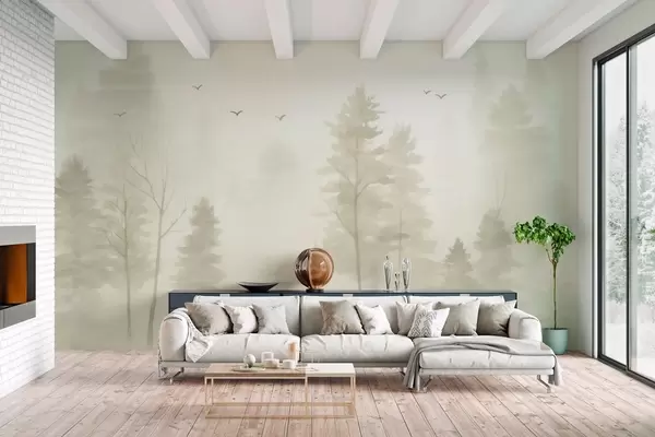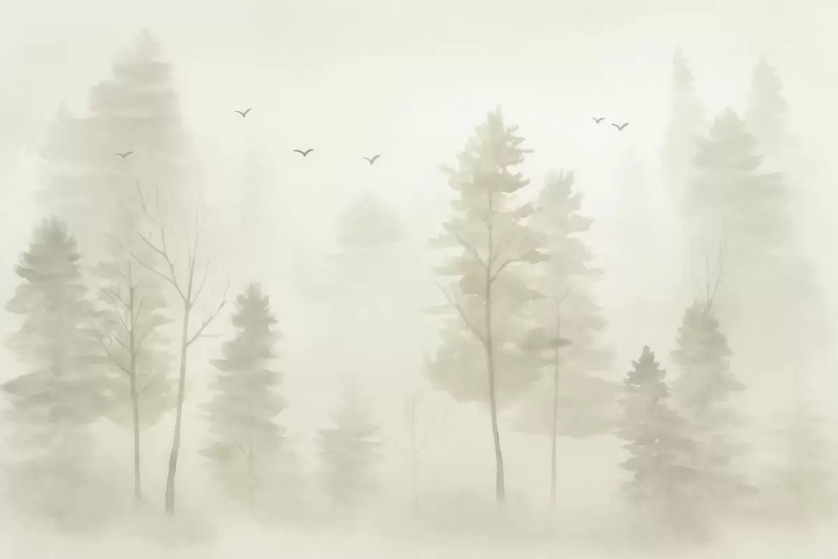 Fototapety akvarelový styl vzdušného lesa v béžových tónech Č. w04872