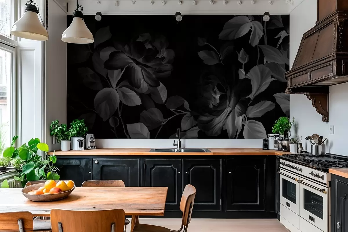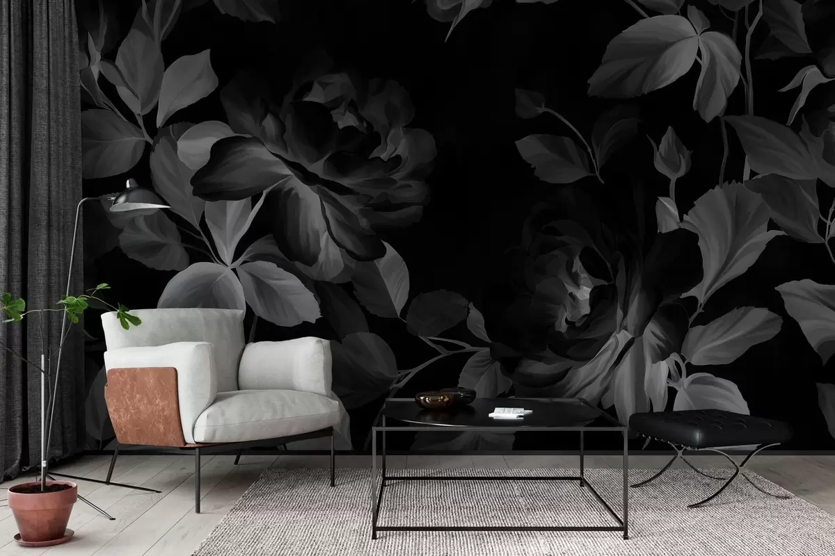 Fototapety černobílé malebné růže ve stylu olejomalby Č. w04873v1
