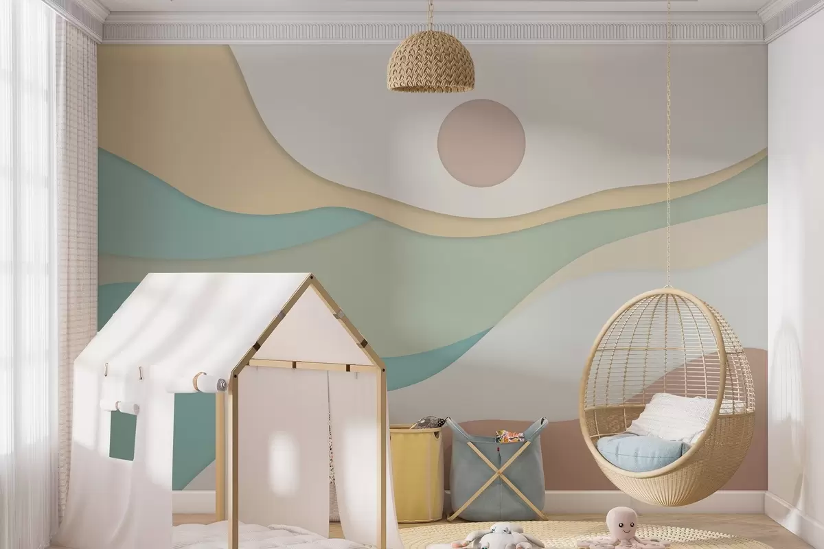 Fototapety Minimalistická abstrakce s jemnými, vlnovitými tvary připomínajícími plynulé krajiny a duny. Č. w04874
