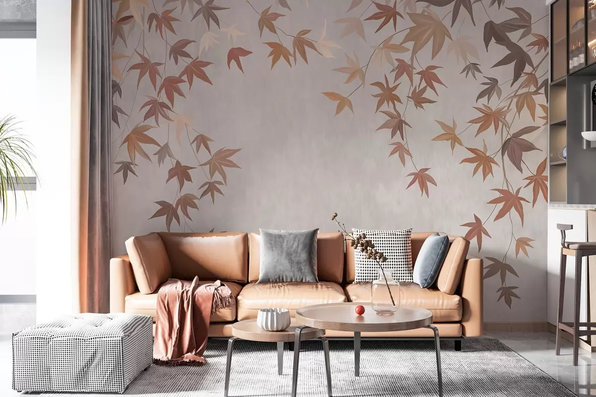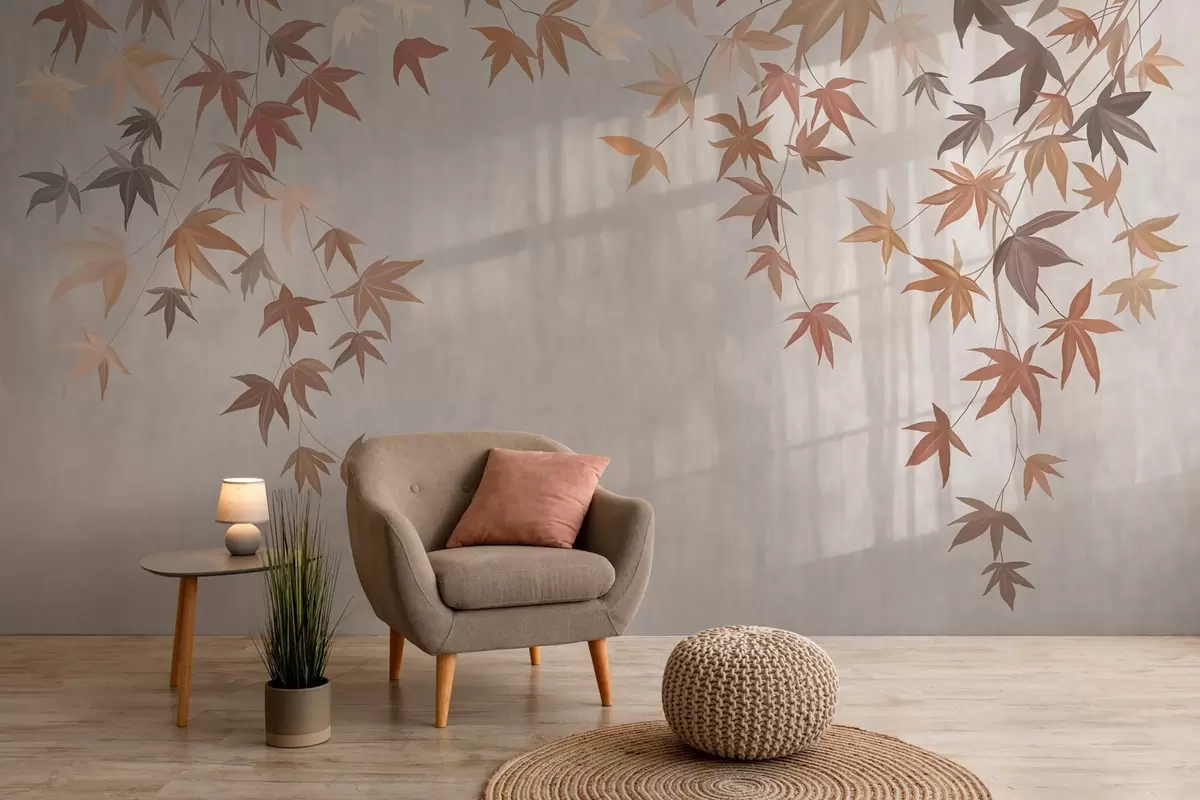 Fototapety barevné listy břečťanu padající shora ve stylu olejomalby Č. w04878