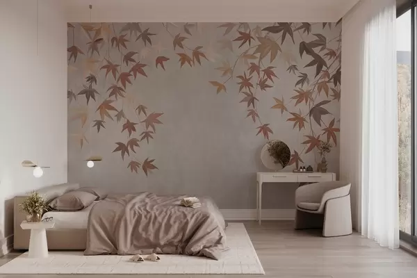 Fototapety barevné listy břečťanu padající shora ve stylu olejomalby Č. w04878