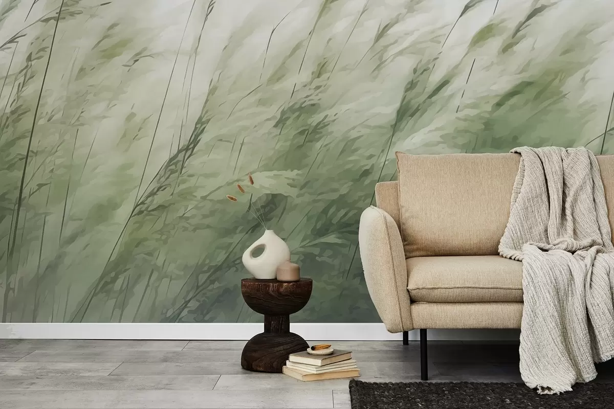 Fototapety Lehké trávy ve větru, jemné zeleno-bílé tahy Č. w04957