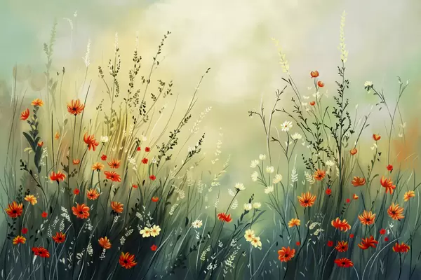Fototapety Luční květiny a trávy v jemném malířském stylu Č. w05015