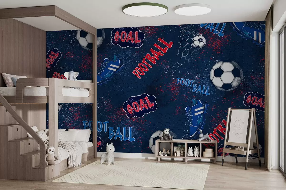 Fototapety Opakující se vzor s míčky, kopačkami a textovými prvky Č. w05037v2
