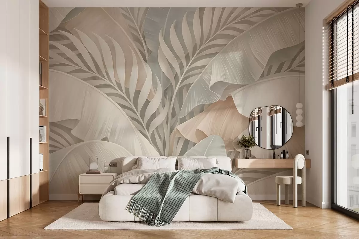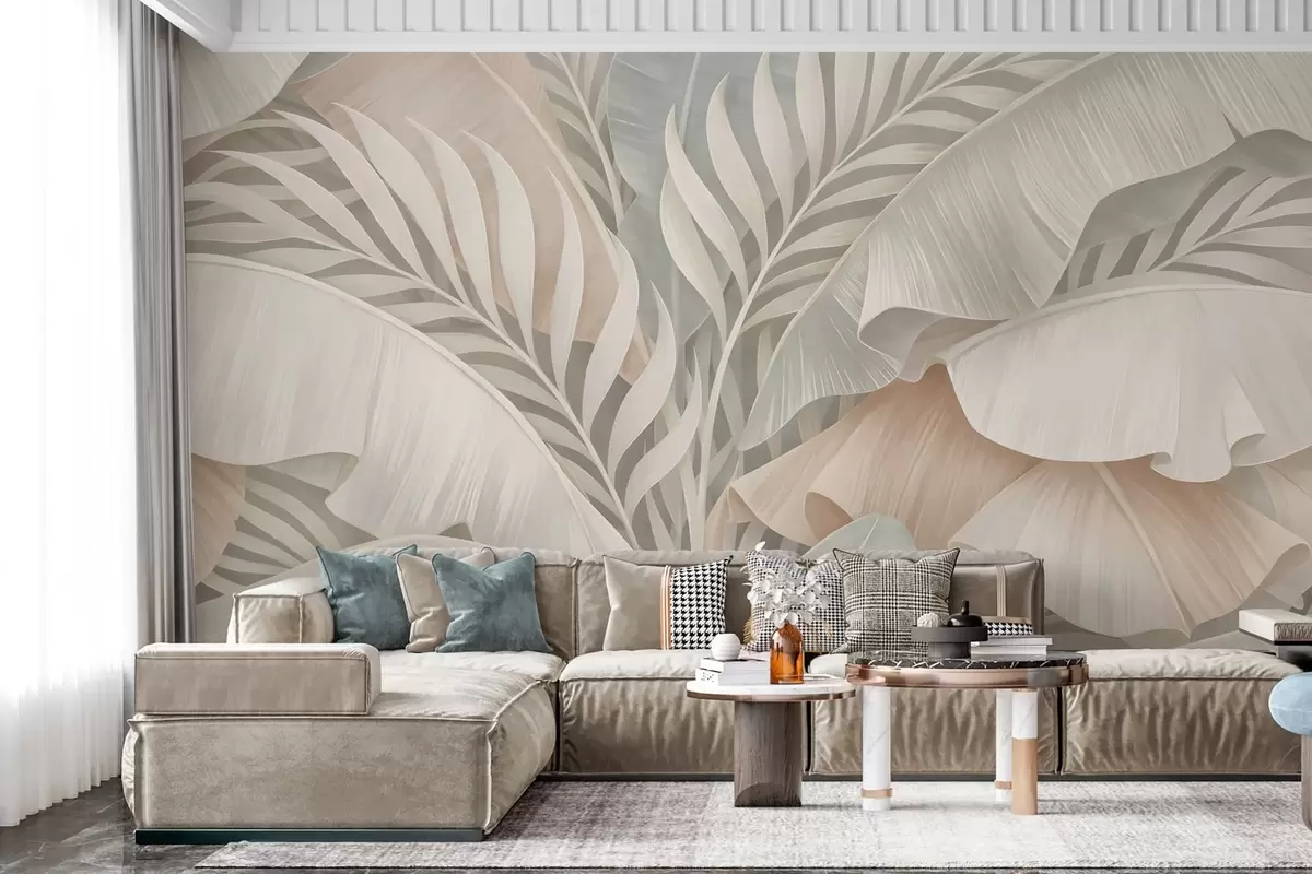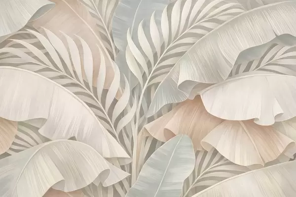 Fototapety velké tropické listy v odstínech broskvové a matné tyrkysové barvy Č. w05062
