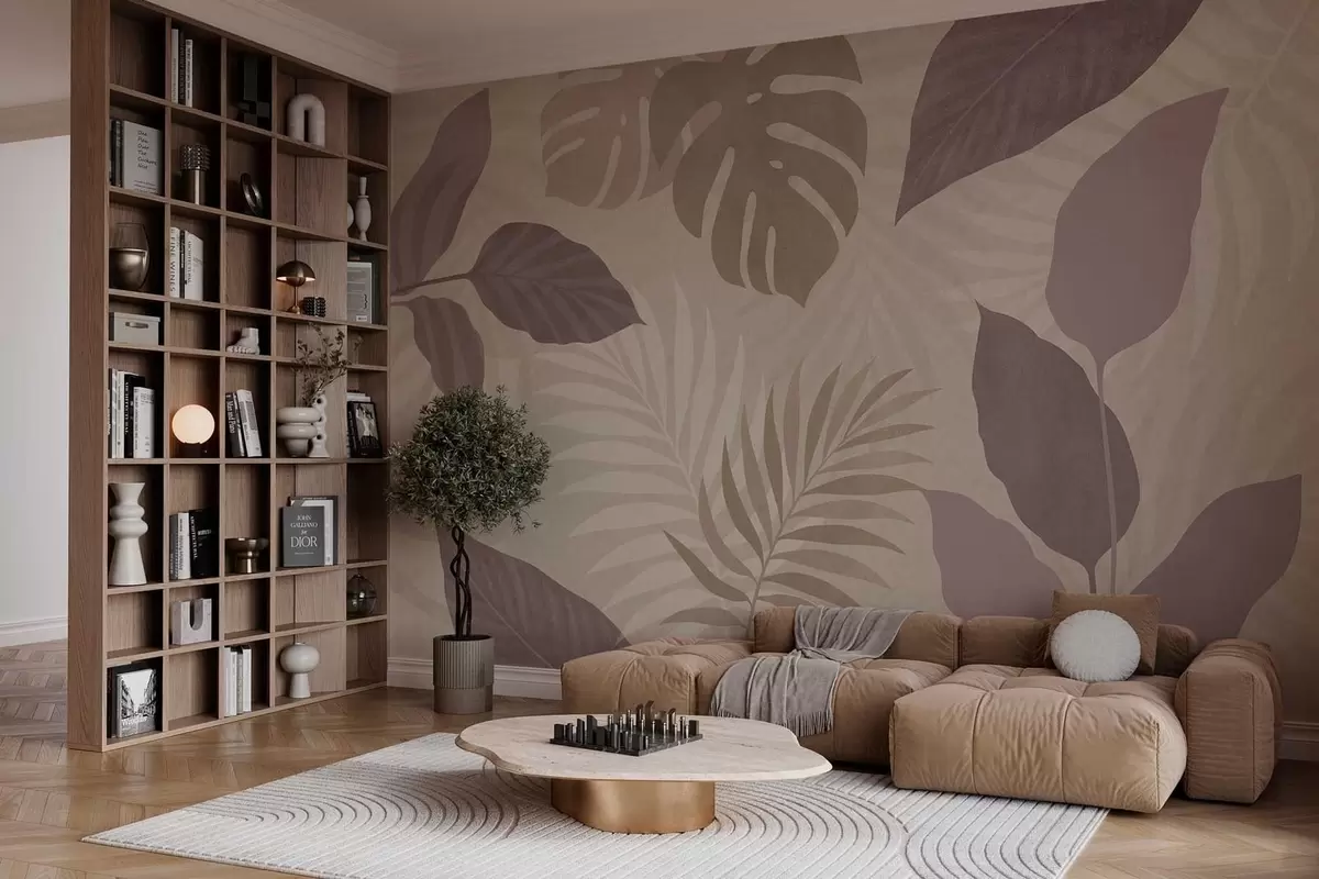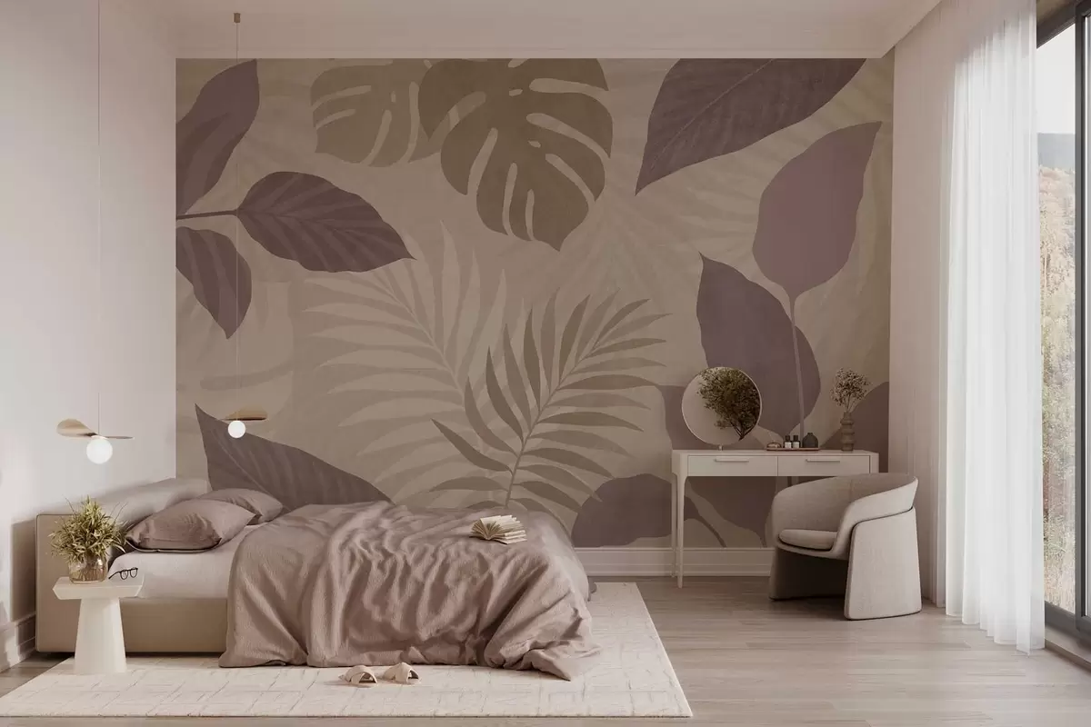 Fototapety texturované tropické listy na pískovém pozadí Č. w05063