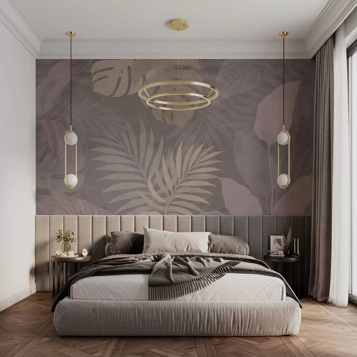 Fototapety texturované tropické listy na šedém pozadí Č. w05063v1
