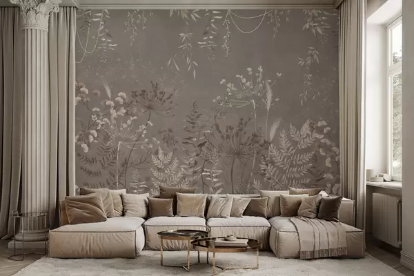Fototapety Lehký botanický vzor s květinami a listy Č. w05092v1