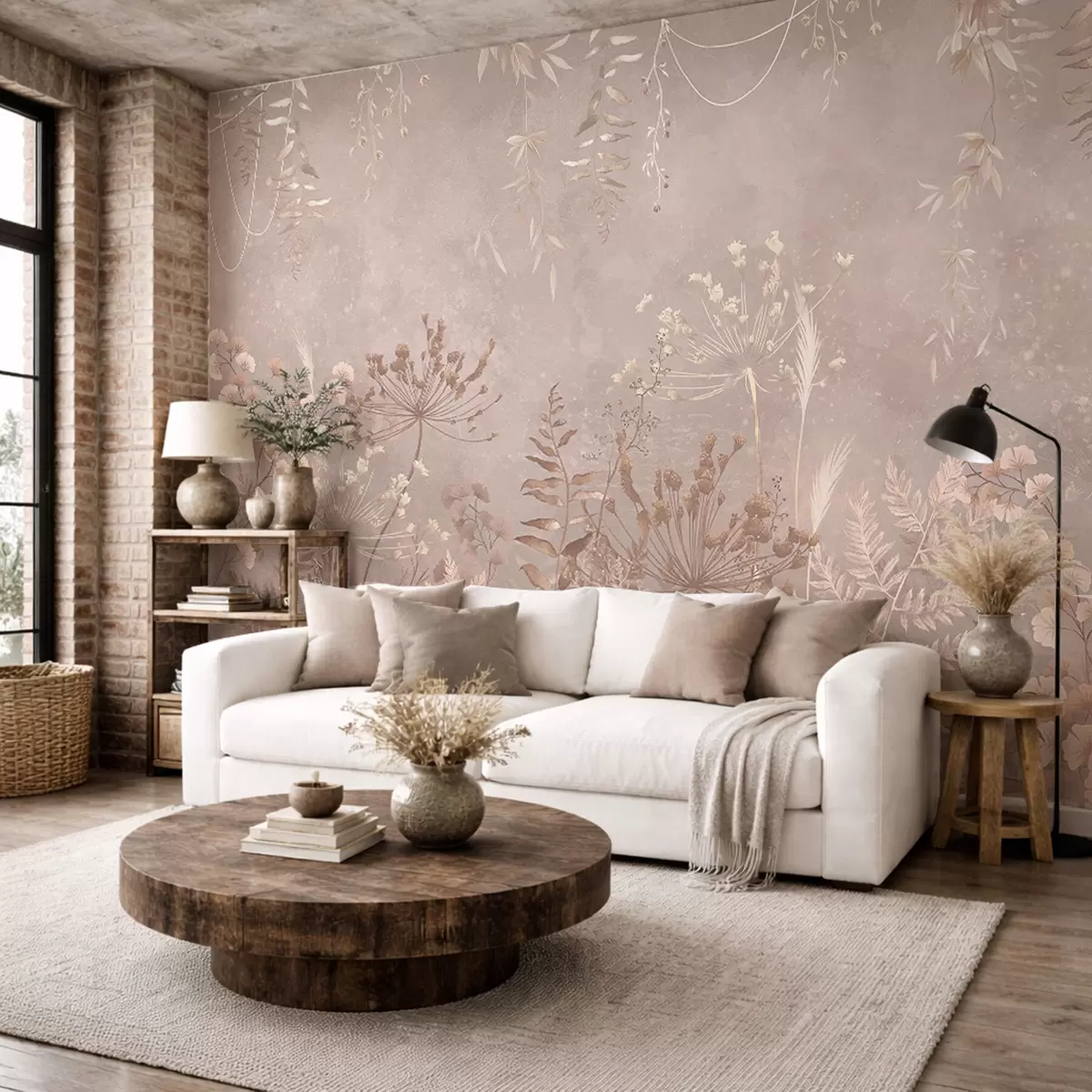 Fototapety Jemný béžový botanický vzor s divokými květinami Č. w05092v2