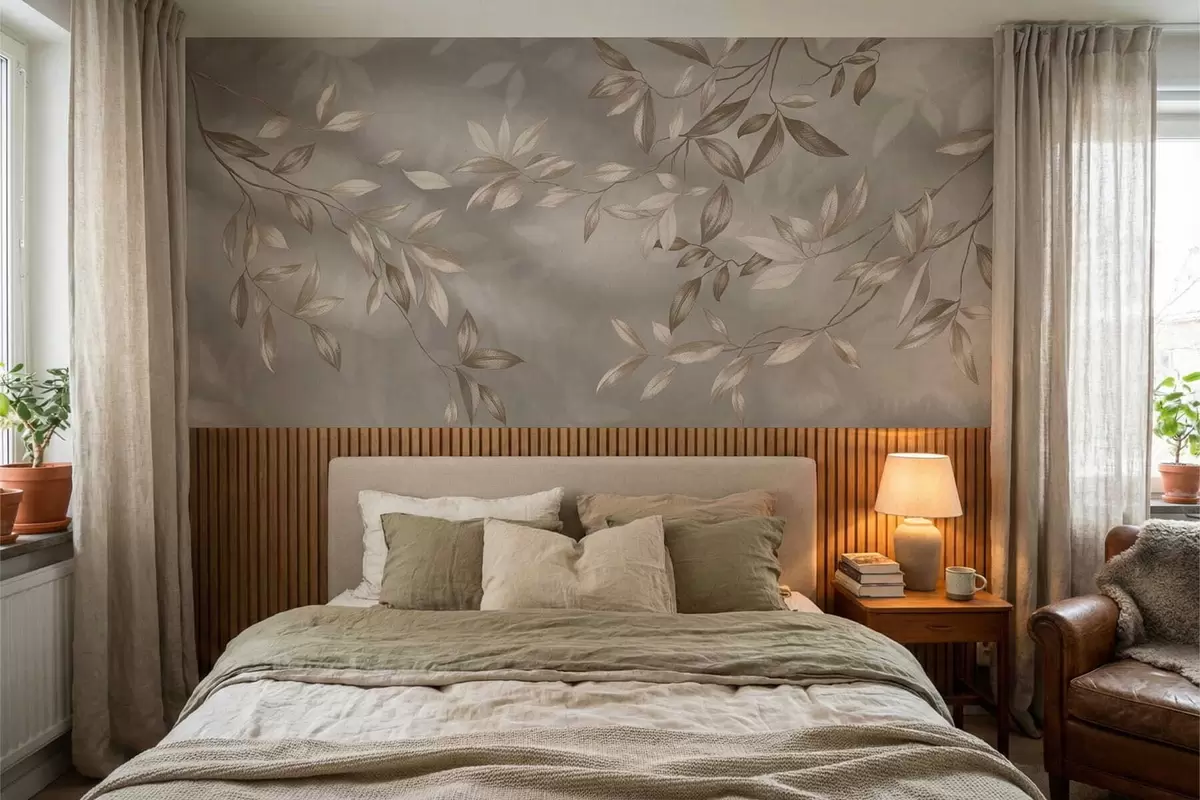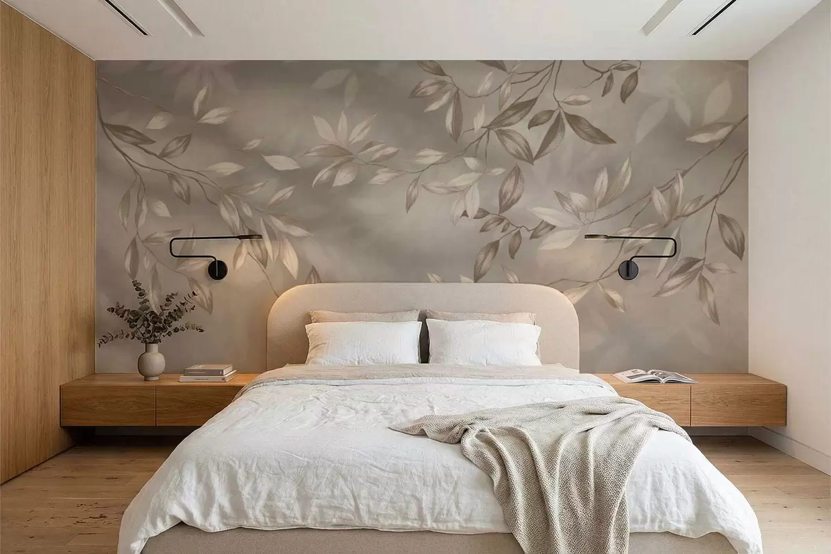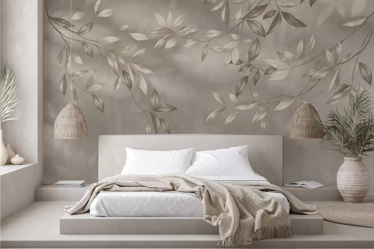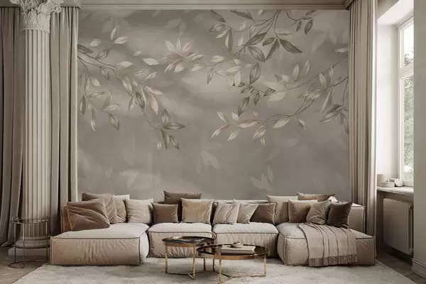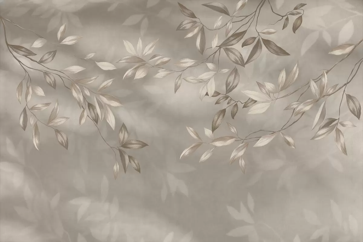 Fototapety Elegantní listnaté větve v béžových odstínech na světlém pozadí Č. w05113