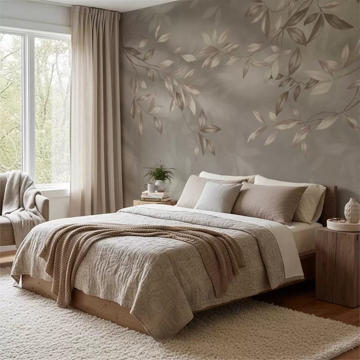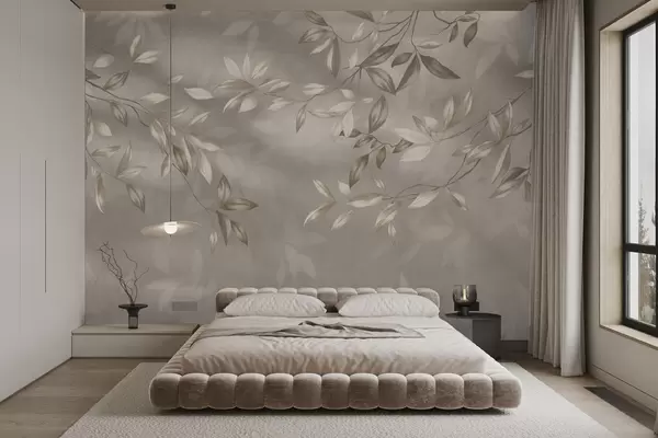 Fototapety Elegantní listnaté větve v béžových odstínech na světlém pozadí Č. w05113