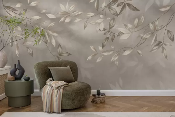 Fototapety Elegantní listnaté větve v béžových odstínech na světlém pozadí Č. w05113