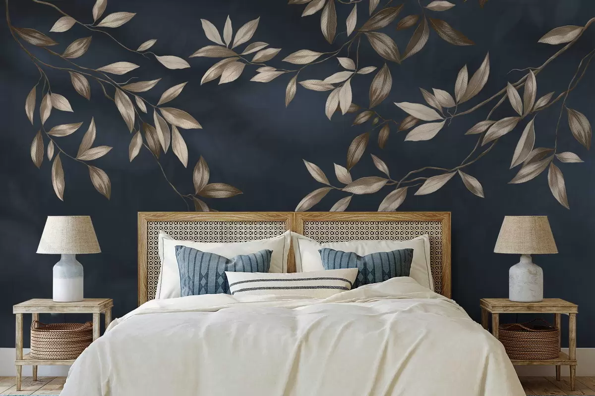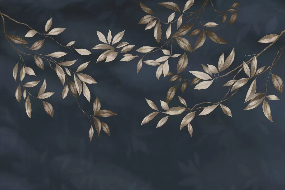 Fototapety Dekorativní listnaté větve na tmavě modrém pozadí Č. w05113v1