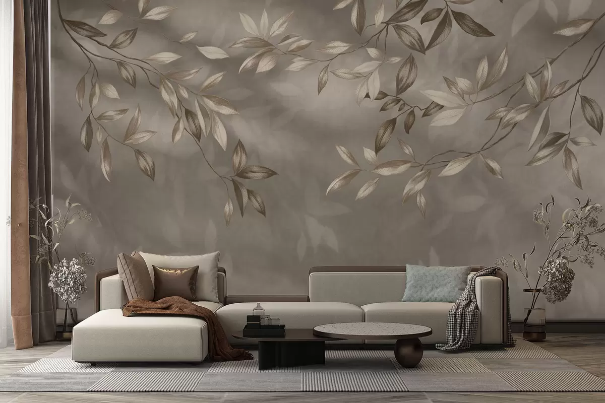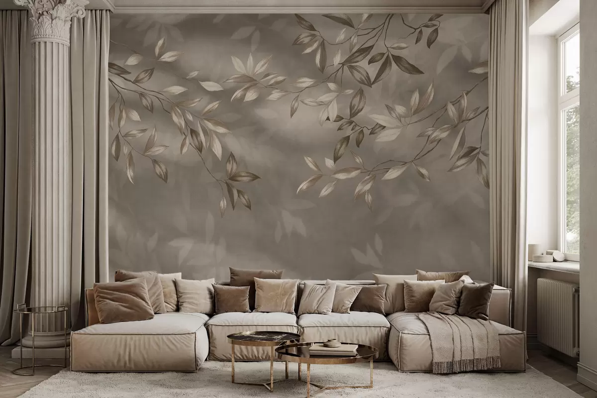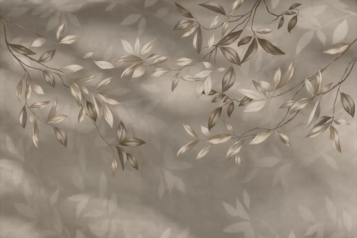 Fototapety Jemné listnaté větve v béžových tónech na světlém pozadí Č. w05113v2