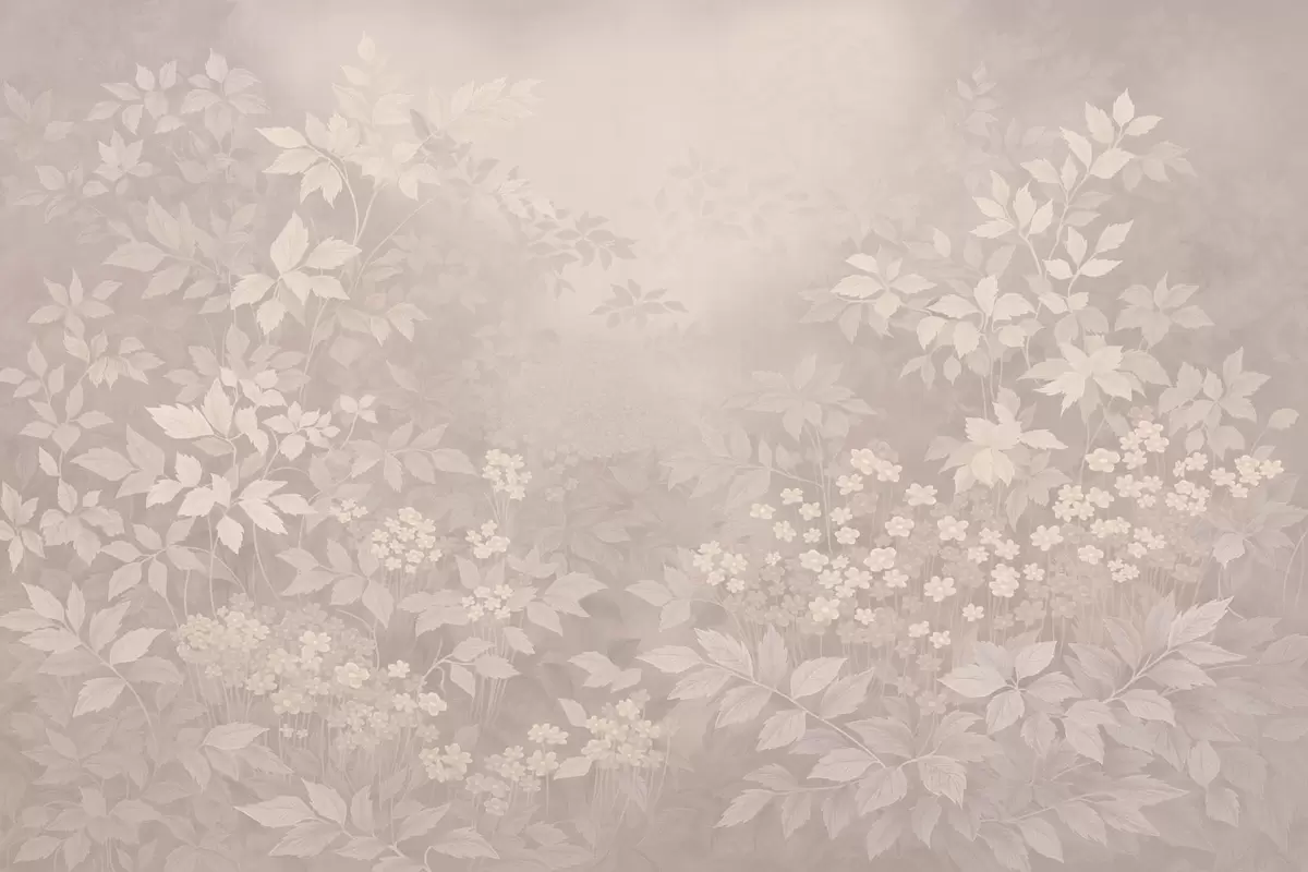 Fototapety Lehký botanický ornament s listy a malými květy Č. w05115