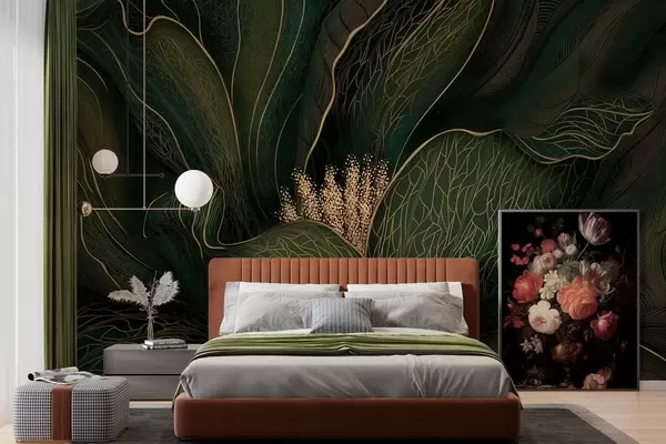 Fototapety Tmavě zelená abstraktní květina s jemnými linkami Č. w05119v1